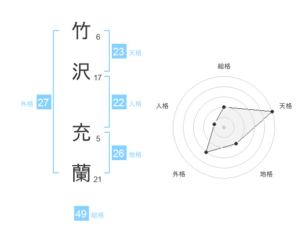 竹沢 充蘭さんの天格は23画の5点!