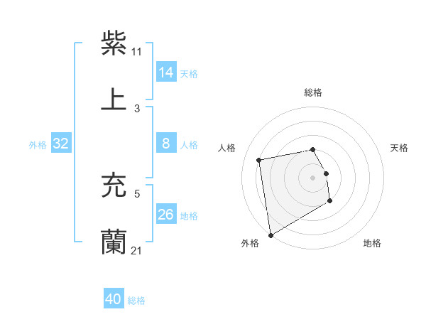 紫上 充蘭さんの総格は40画の2点!