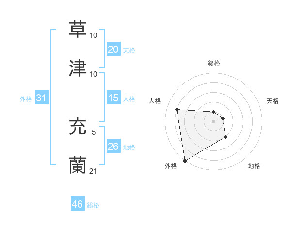 草津 充蘭さんを姓名の画数から五運を鑑定