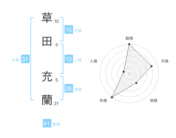 草田 充蘭さんの外格は31画の5点!