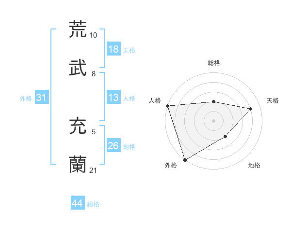 荒武 充蘭さんの総格は44画の2点!