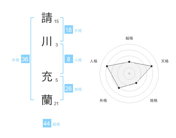 請川 充蘭さんの総格は44画の2点!