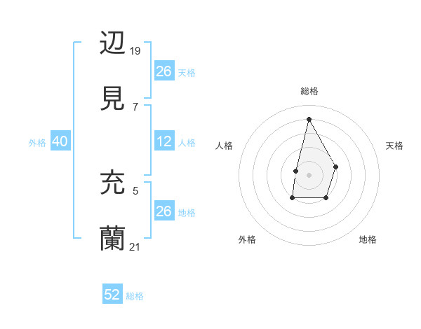 辺見 充蘭さんを姓名の画数から五運を鑑定