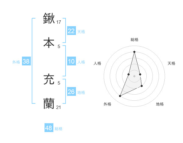 鍬本 充蘭さんの総格は48画の4点!
