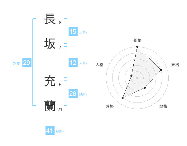長坂 充蘭さんの総格は41画の5点!