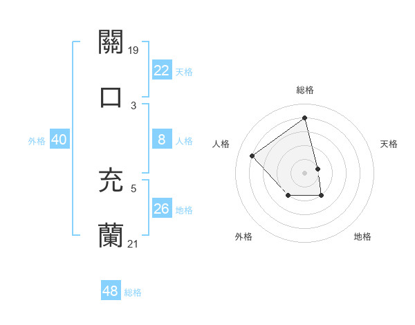 關口 充蘭さんを姓名の画数から五運を鑑定