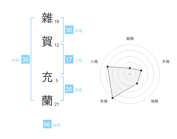 雜賀 充蘭さんの総格は56画の1点!