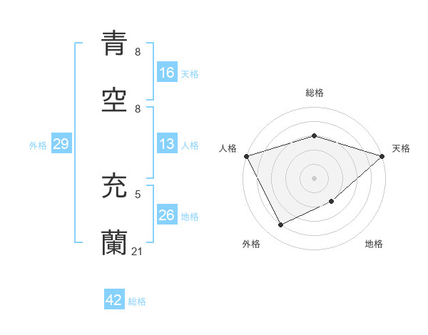 青空 充蘭さんの天格は16画の5点!