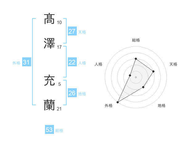 髙澤 充蘭さんの総格は53画の3点!