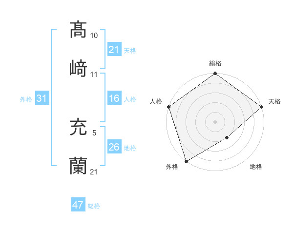 髙﨑 充蘭さんの総格は47画の5点!