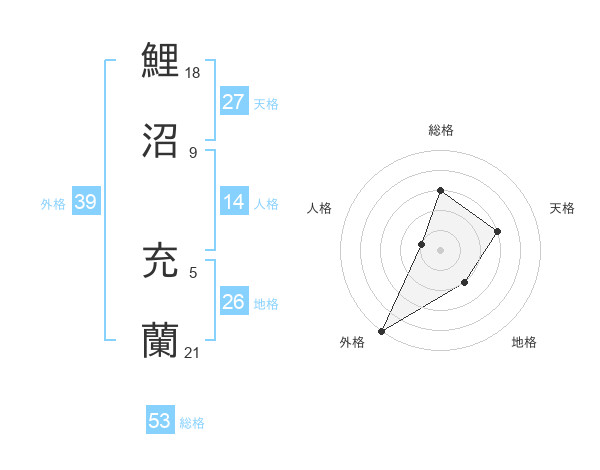 鯉沼 充蘭さんの外格は39画の5点!