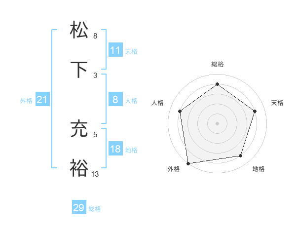 松下 充裕さんの総格は29画の4点!