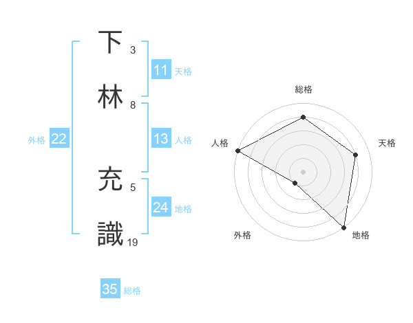 下林 充識さんの総格は35画の4点!
