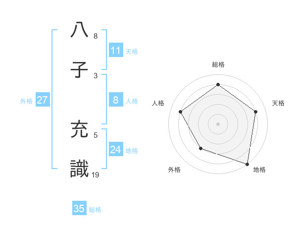 八子 充識さんの外格は27画の3点!