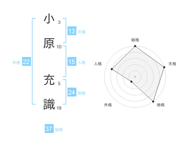 小原 充識さんの天格は13画の5点!