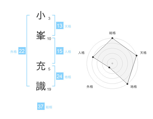 小峯 充識さんの総格は37画の5点!