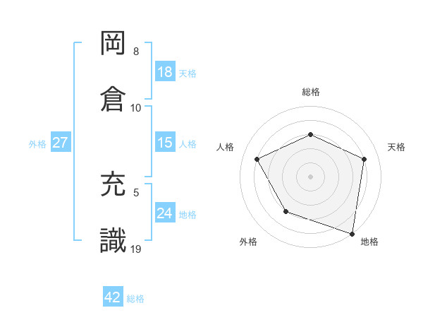 岡倉 充識さんを姓名の画数から五運を鑑定