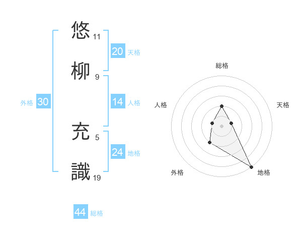 悠柳 充識さんを姓名の画数から五運を鑑定