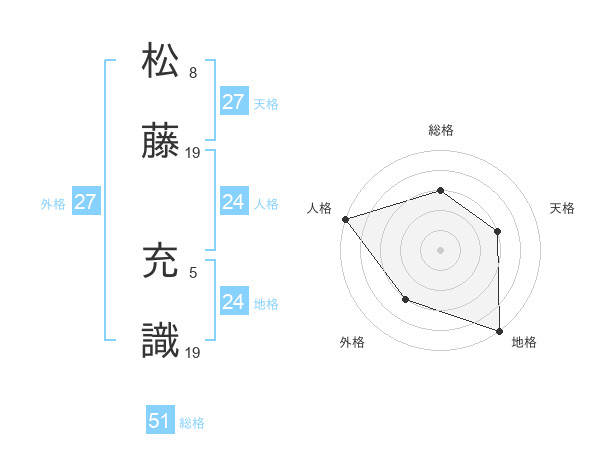 松藤 充識さんの総格は51画の3点!