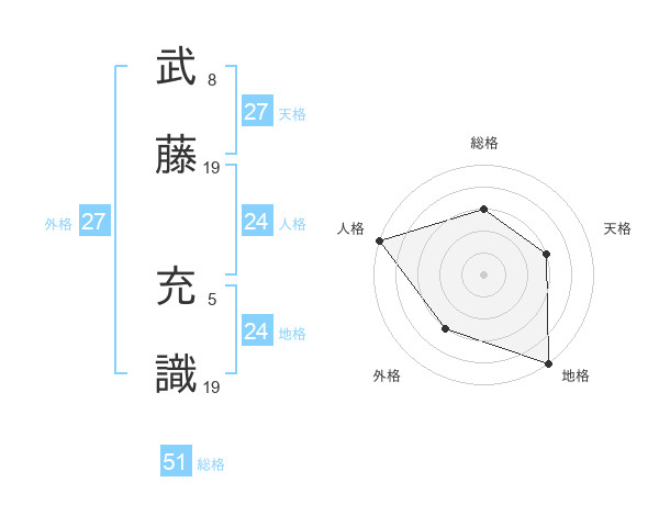 武藤 充識さんの総格は51画の3点!