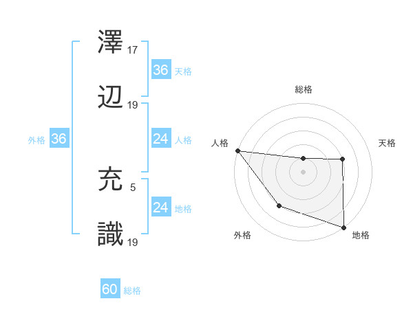 澤辺 充識さんの総格は60画の1点!