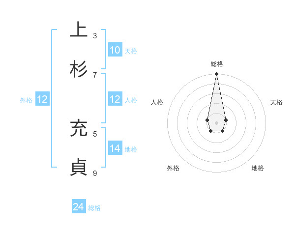 上杉 充貞さんの総格は24画の5点!