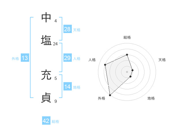 中塩 充貞さんの外格は13画の5点!