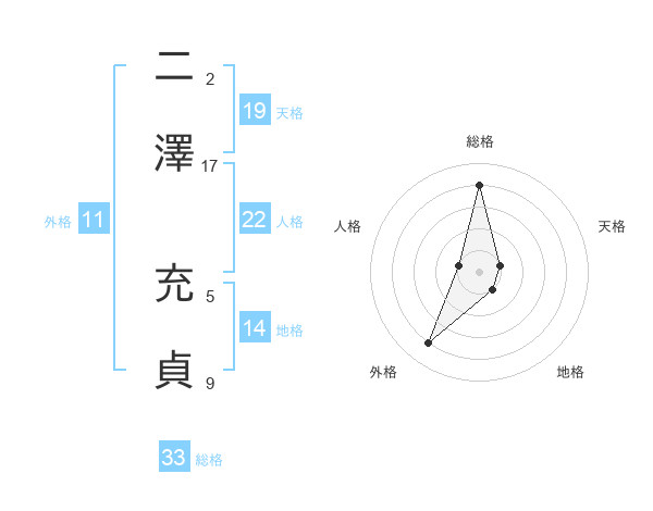 二澤 充貞さんを姓名の画数から五運を鑑定