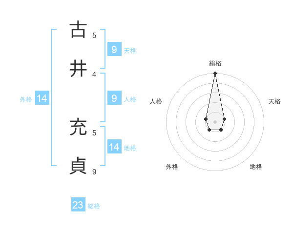 古井 充貞さんの総格は23画の5点!