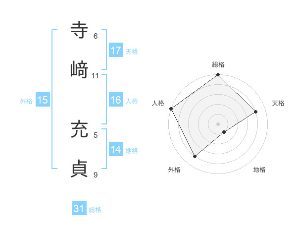 寺﨑 充貞さんを姓名の画数から五運を鑑定