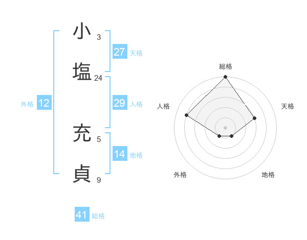 小塩 充貞さんを姓名の画数から五運を鑑定