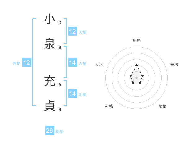 小泉 充貞さんを姓名の画数から五運を鑑定