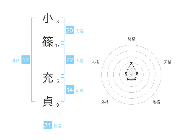 小篠 充貞さんの総格は34画の2点!