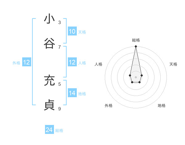 小谷 充貞さんの総格は24画の5点!