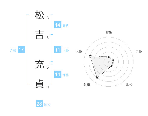松吉 充貞さんの天格は14画の1点!