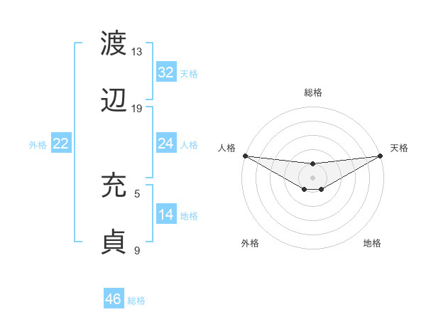 渡辺 充貞さんの天格は32画の5点
