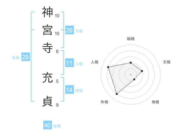 神宮寺 充貞さんを姓名の画数から五運を鑑定