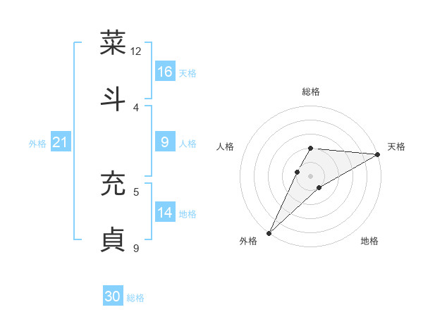 菜斗 充貞さんの総格は30画の2点!