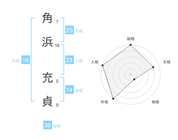 角浜 充貞さんを姓名の画数から五運を鑑定