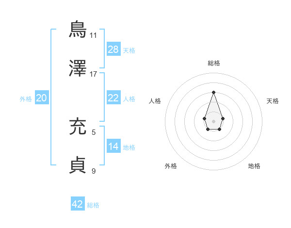 鳥澤 充貞さんの総格は42画の3点!