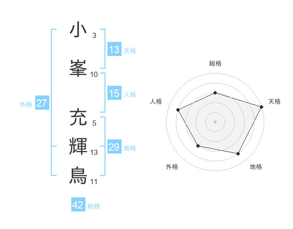 小峯 充輝鳥さんを姓名の画数から五運を鑑定