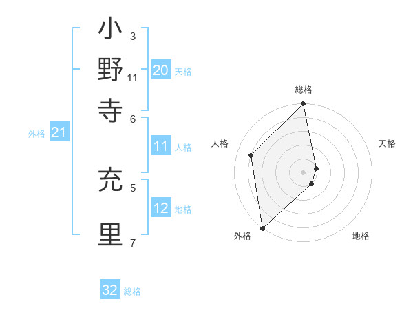 小野寺 充里さんを姓名の画数から五運を鑑定