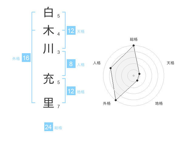 白木川 充里さんの総格は24画の5点!