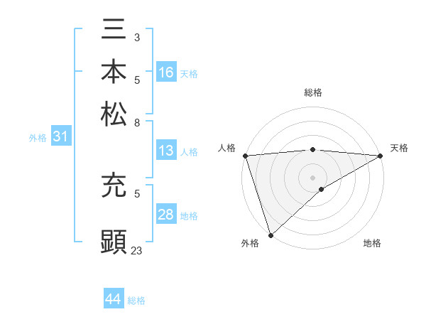 三本松 充顕さんを姓名の画数から五運を鑑定
