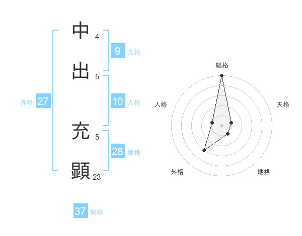 中出 充顕さんの総格は37画の5点!
