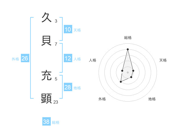久貝 充顕さんの総格は38画の4点!