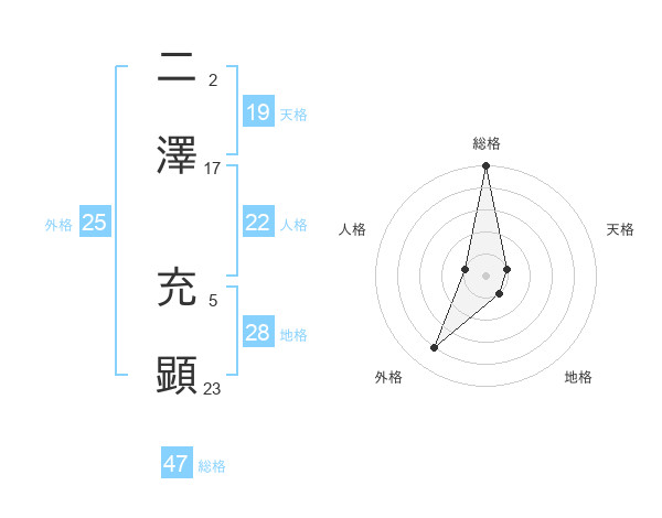 二澤 充顕さんの総格は47画の5点!