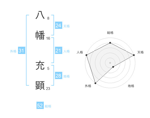 八幡 充顕さんの総格は52画の4点!