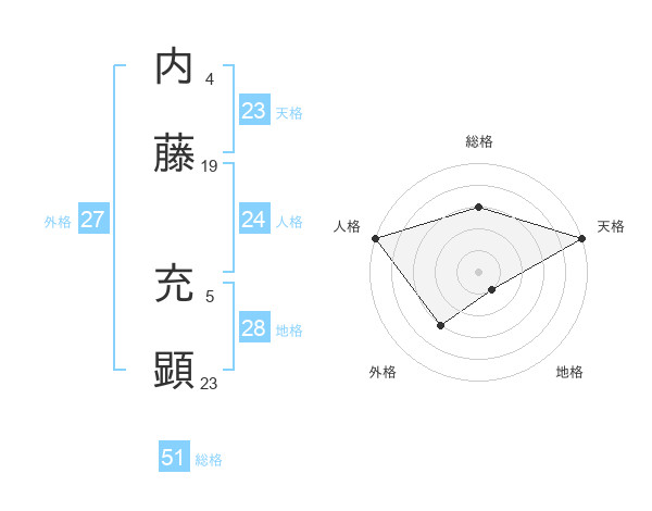内藤 充顕さんの総格は51画の3点!