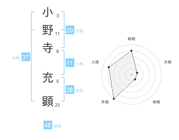 小野寺 充顕さんの天格は20画の1点!
